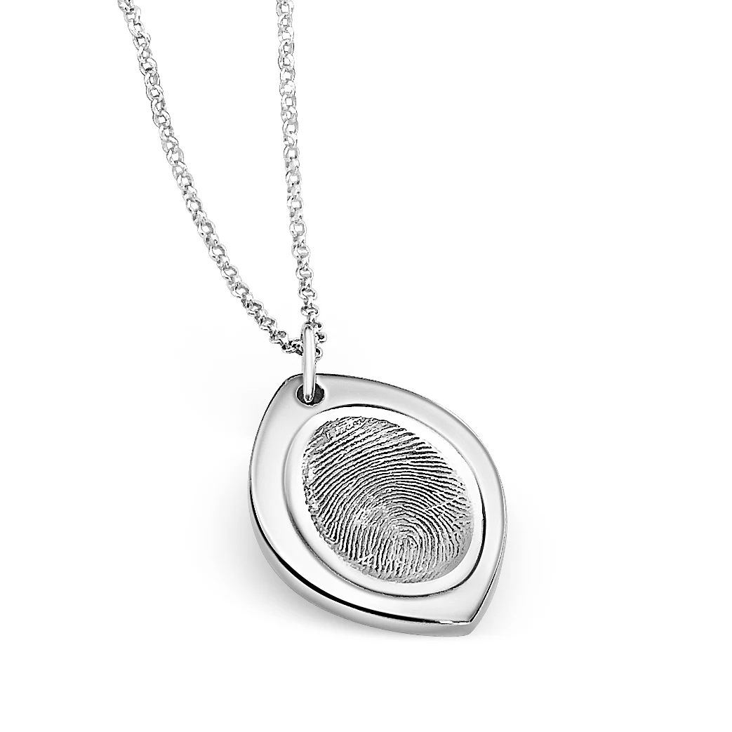 Each piece is handcrafted in sterling silver and can be personalised with your loved ones unique fingerprint, special date, names or messages.